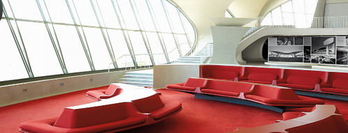 Na fotografii powyżej widzimy czerwień, która zakręca wokół eliptycznych narożników nowo odrestaurowanego holu zaprojektowanego przez Earo Saarinen’a w roku 1962 na międzynarodowym lotnisku John F. Kennedy’ego w Nowym Jorku.