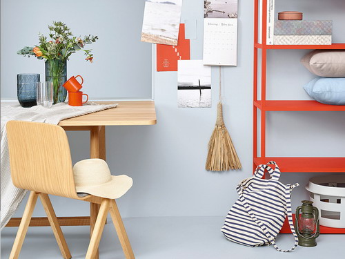 Dla osób ceniących stonowaną kolorystykę odpowiednim wyborem na urządzenie domowego biura będzie chłodna elegancja szarości z palety Tikkurila Deco Grey. Barwy te idealnie wyeksponują nietypową, geometryczną bryłę mebli. Całości, w tej wysmakowanej aranżacji, dopełnią designerskie dekoracje ze stali i szkła.