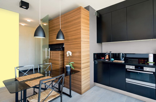 Elegancka czerń tonuje i chłodzi przestrzeń, idealnie współgrając z szarością i bielą. Barwnym urozmaiceniem całości jest słoneczny odcień żółcieni, który wnosi radość i energię. W takim zestawieniu barw doskonale smakować będzie zarówno rodzinne śniadanie, jak i kolacja przy świecach.