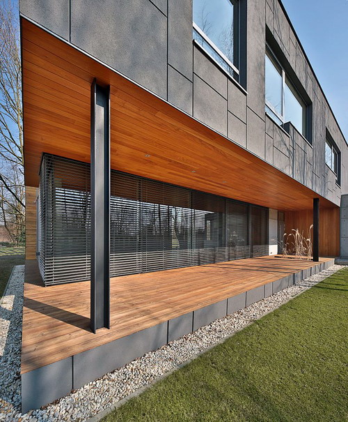 Specjaliści z branży architektonicznej zmagają się z licznymi klientami, którzy ingerują w każdy, nawet najdrobniejszy szczegół projektu, przez co końcowy efekt może okazać się różny od zaplanowanego. We współpracy z architektem najważniejsze jest tymczasem zaufanie do jego doświadczenia oraz kreatywności. Podczas prac nad projektem zwycięskiego obiektu, znakomita większość decyzji projektowych po rekomendacjach twórców była w pełni akceptowana przez inwestora. Zaowocowało to stworzeniem niepowtarzalnego domu, który podbił serca Jury konkursu Fasada Roku 2014 oraz Internautów, którzy przyznali obiektowi specjalne wyróżnienie. Zdaniem arch. Macieja Beczaka końcowy efekt oparty jest na otwartości projektowej, zastosowaniu nowych, eksperymentalnych rozwiązań oraz zaakcentowaniu detali. "Idea projektu była bardzo złożona, choć ostatecznie wypracowana forma jest stosunkowo prosta. Poza programem funkcjonalnym, jedyne wytyczne inwestora to kwestia niestandardowych wysokości kondygnacji (3,85m dla parteru i 3m dla pietra). Zależało nam na stworzeniu obiektu prostego w wyrazie, o jasnym podziale materiałowym i kolorystycznym. Inwestor zaufał naszym kompetencjom i doświadczeniu, dzięki czemu mieliśmy pełną swobodę w podejmowaniu decyzji. Pozwoliło nam to na eksperymentalne zastosowanie betonu, tynku oraz drewna w stworzeniu elewacji, w którą tchnęliśmy życie. Połączenie surowego, loftowego betonu bryły garażu z kontrastującą grafitową bryłą części mieszkalnej, w której zastosowano gładką powierzchnię pociętą nieregularną, ortogonalną siatką boniowania, zaowocowało powstaniem nieszablonowej struktury. Zrównoważenie chłodu głównych decyzji materiałowych elewacji stanowi bezsęczne, afrykańskie drewno okoume, które nadało fasadzie wyrazistości".