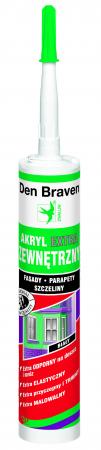 Acryl-Extra firmy Den Braven to uszczelniacz do szczelin w elewacji stworzony na bazie specjalnie dobranych, wysokiej jakości żywic akrylowych, charakteryzujący się szczególną odpornością na działanie warunków pogodowych. Ten plastyczno-elastyczny, jednoskładnikowy kit uszczelniający natychmiast po jego zastosowaniu jest trwały i niepodatny na opady atmosferyczne oraz wilgoć, natomiast po utwardzeniu również odporny na mróz i temperaturę do -20°C.Dzięki temu niezależnie od panującej za oknem aury z powodzeniem używać go można do prac budowlanych i remontowych prowadzonych na zewnątrz. Nie trzeba więc będzie odkładać rozpoczętych napraw na cieplejszy sezon. Co ważniejsze, po nałożeniu i odparowaniu wody tworzy on mocne i wysoce rozciągliwe wiązanie o niskiej kurczliwości (sucha pozostałość wynosi ok. 86%), gwarantując tym samym estetyczną fugę bez zarysowań i wtórnych pęknięć. W połączeniu z doskonałą przyczepnością do większości podłoży budowlanych, zwłaszcza tych o porowatej strukturze, daje to szeroki zakres zastosowań.