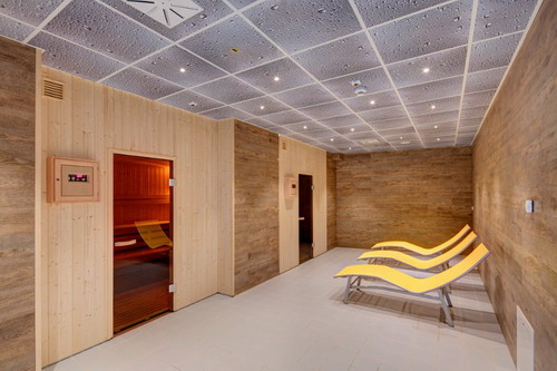 Płyty Knauf AMF z nadrukiem kropli wody w hotelu Słoneczny Zdrój, Busko-Zdrój