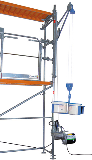 Fot. 1 Wciągarka Geda Mini 60S ze specjalnym uchwytem do transportu elementów rusztowań