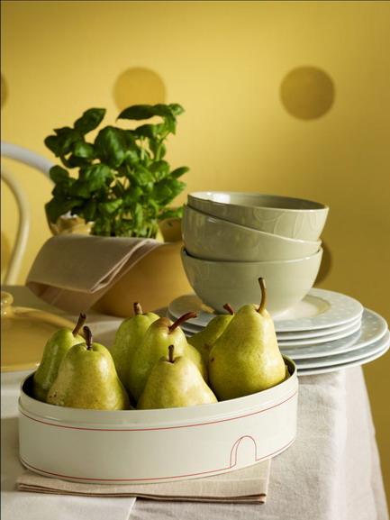 W aranżacji pokoju dziennego bądź jadalni warto wykorzystać zgaszone, nie nazbyt jaskrawe odcienie żółtego. Dla urozmaicenia stylizacji wnętrza można wykonać przy pomocy szablonu prosty wzór w nieco ciemniejszym, oliwkowym kolorze. W takim wnętrzu świetnie sprawdzą się klasyczne, białe meble. W urokliwej i pełnej ciepła aranżacji spożywanie posiłków stanie się prawdziwą przyjemnością.