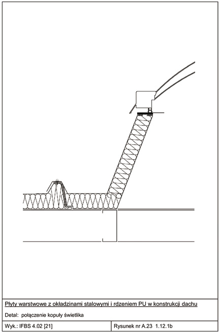 W części graficznej opracowania przedstawiono detale połączeń płyt warstwowych z okładzinami stalowymi lub aluminiowymi oraz rdzeniem poliuretanowym lub alternatywnie z wełny mineralnej.