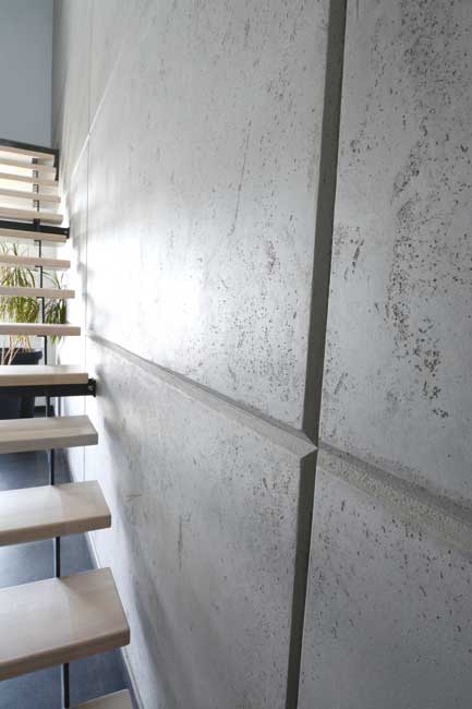 Stosowanie Betonu TG jest korzystne nie tylko ze względów estetycznych. Do niebywałych zalet należy także jego struktura, która jest świetną alternatywą dla płyt betonowych. Grubość tynku to zaledwie 2 mm. Stosowanie ciężkich płyt, których grubość wraz z systemem mocowań wynosi ok 4–5 cm, niejednokrotnie wymaga nie tylko znacznie silniejszej konstrukcji ścian, które utrzymają tak duży ciężar, ale również znacznie szerszych przestrzeni. Płyty poprzez swój rozmiar bardzo często zawężają pomieszczenia. Staje się to bardzo problemowe zwłaszcza w przypadku klatek schodowych. Jeżeli na etapie projektu nie przewidziano wykończenia betonem i nie pozostawiono odpowiednio szerszych przestrzeni, to Beton TG jest w takich sytuacjach doskonałym rozwiązaniem.