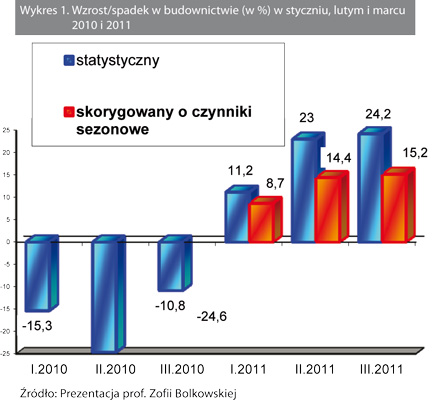 Chociaż wzrost robót budowlano-montażowych w małych przedsiębiorstwach jest wysoki (22,9%), to należy zaznaczyć, że zaledwie osiągał poziom z 2008 i 2009 roku.