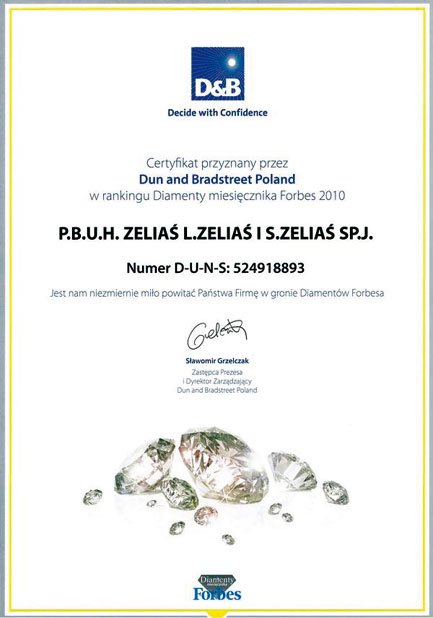 Gwarancją na profesjonalną obsługę oraz wysoką jakość wykonanych realizacji są kilkukrotnie zdobywane przez firmę Zeliaś nagrody i wyróżnienia: Gazele Biznesu, Gepardy Biznesu, Przejrzysta Firma, Diamenty Forbesa. Współpraca z firmą przebiega terminowo, przejrzyście i fachowo na każdym etapie prac w trakcie realizowania inwestycji.